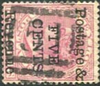 "70" used TRINCOMALEE, Ceylon numeral cancel on 1885 5c on QV 4c rose CA wmk (SG.178). £10