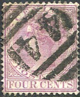 "4" used SAN JUAN, Trinidad numeral cancel (Type 0.2) on 1876 1d CC REVERSED P.13 (SG.75x). £16