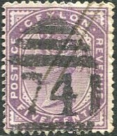 "44" used NAWALAPITIYA, Ceylon numeral cancel on 1883 QV 4c rosy-mauve CA wmk (SG.148). £5