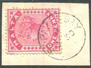 ST. PAUL'S BAY, Malta postmark A/OC 30 00 on QV 1d (SG.21) piece. Ex BIRKETT ALLAN £40