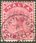ZURRICO, Malta postmark/cancel AM/OC 27 00 (ERD) on QV 1d (SG.21), rare on this issue. Ex BIRKETT ALLAN £200