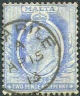 NOTABILE, Malta postmark/cancel A/AP 15 13 on KE7 2½d (SG.53) £8