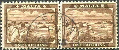 ASCIAK, Malta postmark pert dated PM/AU 23 -- on horiz. pair KE7 ¼d Harbour (SG.45b). Ex BIRKETT ALLAN £18