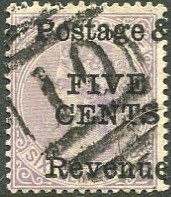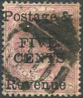 on 1885 5c on QV 4c rose CA wmk (SG.178).
