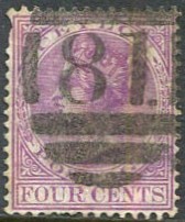 on 1883 QV 4c rosy-mauve CA wmk (SG.148).