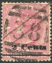 on 1888 TWO CENTS on QV 4c rose (SG.203), facial scuff lower right corner.