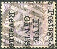 on 1885 5c on QV 32c slate CC wmk (SG.155).