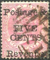 on 1885 5c on QV 4c rose CA wmk (SG.178).