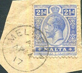 A/AP 4 17 on KGV 2½d (SG.77) piece, scarce on this issue. Ex BIRKETT ALLAN