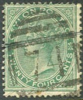 "74" used LINDULA, Ceylon numeral cancel on 1872 QV 24c green CC wmk (SG.127). £12