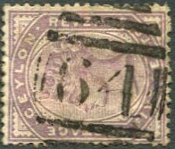 "16" used MASKELIYA, Ceylon numeral cancel on 1885 15c on 16c pale violet CA wmk (SG.186). £30
