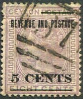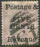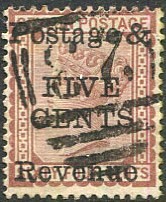 on 5c on QV 8c lilac CA wmk (SG.187).