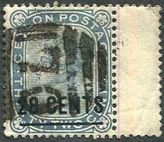 on 1885 "TEN CENTS" on QV 24c brown-purple (SG.185).