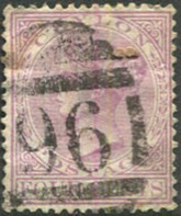 on 1886 QV 5c dull purple (SG.195).
