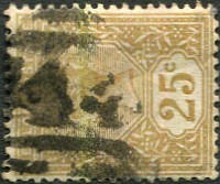 on 1886 QV 25c yellow-brown (SG.198).