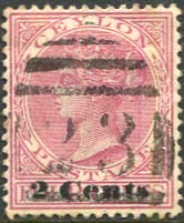 on 1888 "2 Cents" on QV 4c rose (SG.211).