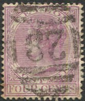 on 1880 QV 4c rosy-mauve CC wmk (SG.123).
