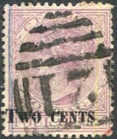 on 1888 "TWO CENTS" on QV 4c rosy mauve (SG.202).