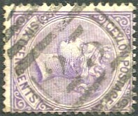"6." used KALUTARA, Ceylon numeral cancel