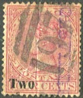 on 1888 "2 Cents" on QV 4c rose (SG.211).
