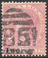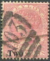 "2" used AVISAWELLA, Ceylon numeral cancel