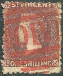 on provisionally supplied Antigua QV 1d carmine-red (SG.26). Cat.£140.00.