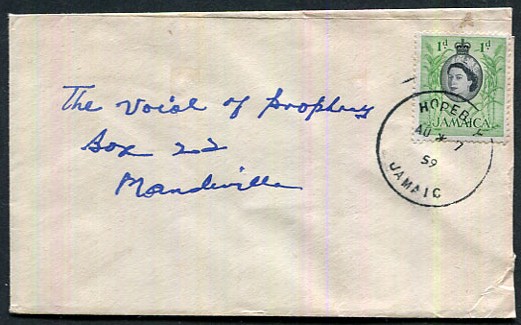 (D1) dated */28 JA 58 tying QE2 1d on local cover to Mandeville.