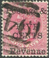 on 1877 QV 6d pale green (SG.23), very fine strikes in red ink seldom found.