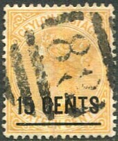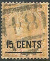 on 1885 15c on 16c orange-yellow (SG.189).