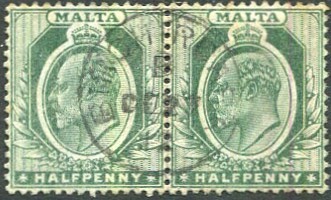 B/DE 27 12 on horiz. pair KE7 ½d (SG.47). Ex BIRKETT ALLAN
