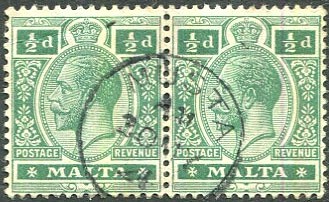 AM/20 MY 21 on horiz. pair KGV ½d (SG.71). Ex BIRKETT ALLAN