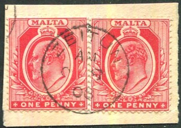 AM/OC 8 08 on horiz. pair KE7 1d (SG.49) piece. Ex BIRKETT ALLAN