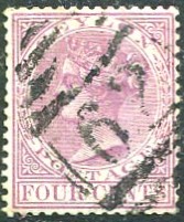 on 1883 QV 4c rosy-mauve CA wmk (SG.148).