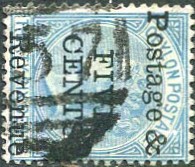 on 1885 5c on QV 8c lilac (SG.187).