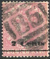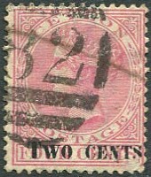 on 1888 2 Cents on QV 4c rose (SG.211).