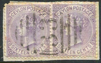 "18" used AMBALANGODA, Ceylon numeral cancel