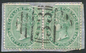 on horiz. pair QV 24c (SG.127) fragment, both stamps defective at middle top.