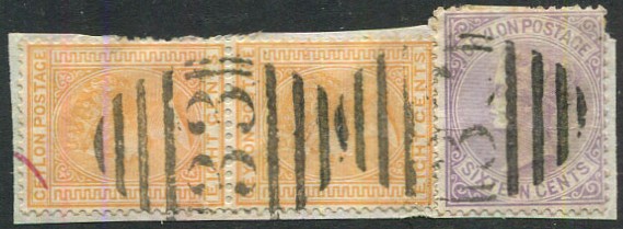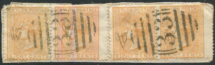 "87" used COLOMBO COURTS, Ceylon numeral cancel