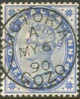 A/MY 6 90 on QV 2½d (SG.25). Ex BIRKETT ALLAN